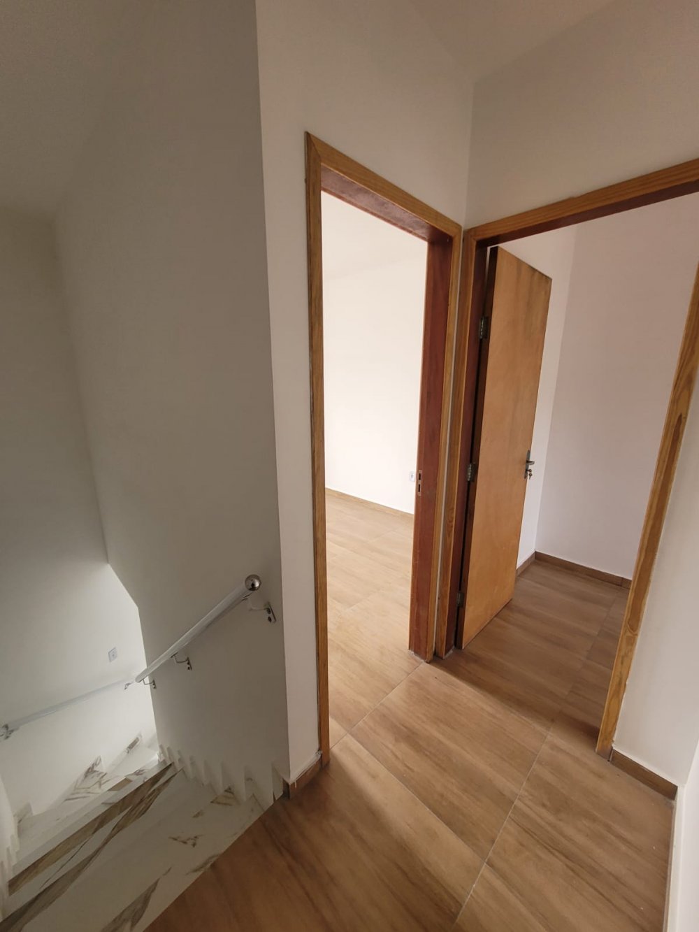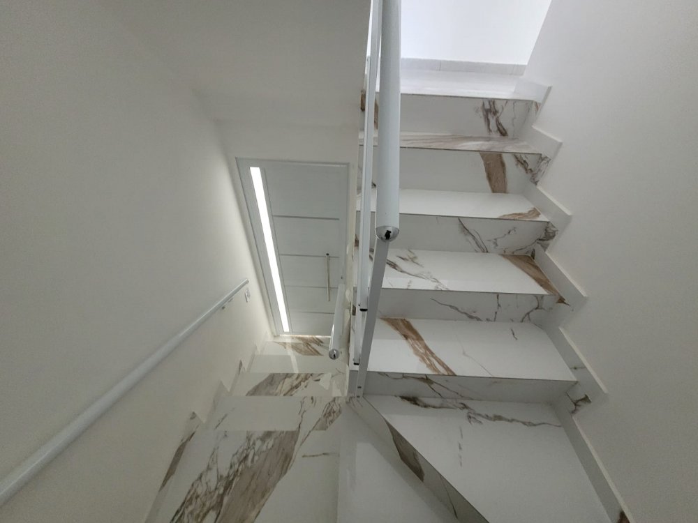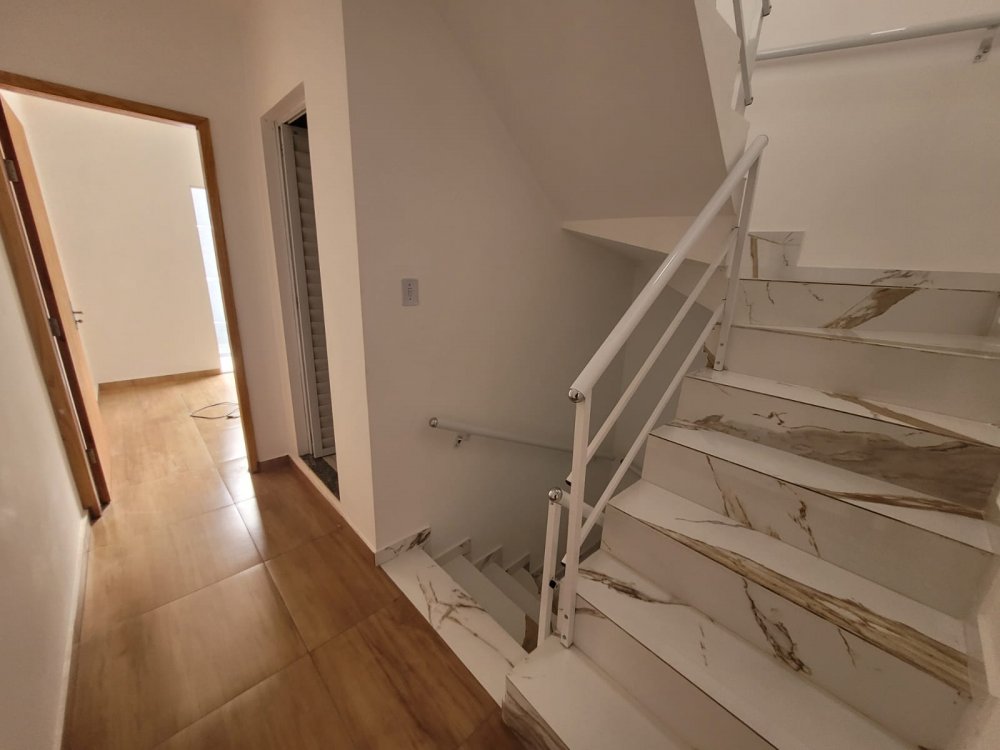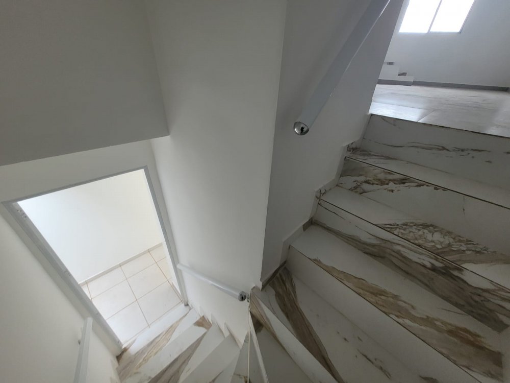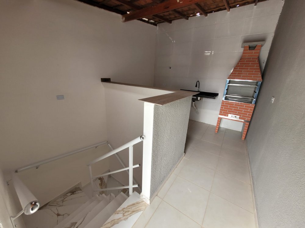 - Ambientes Internos: Sala, cozinha e lavabo no térreo, com dois dormitórios e banheiro de uso comum no andar superior.