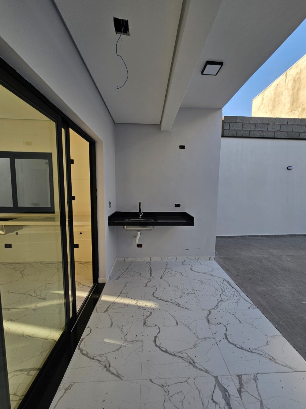 Lavanderia coberta, com pia de granito