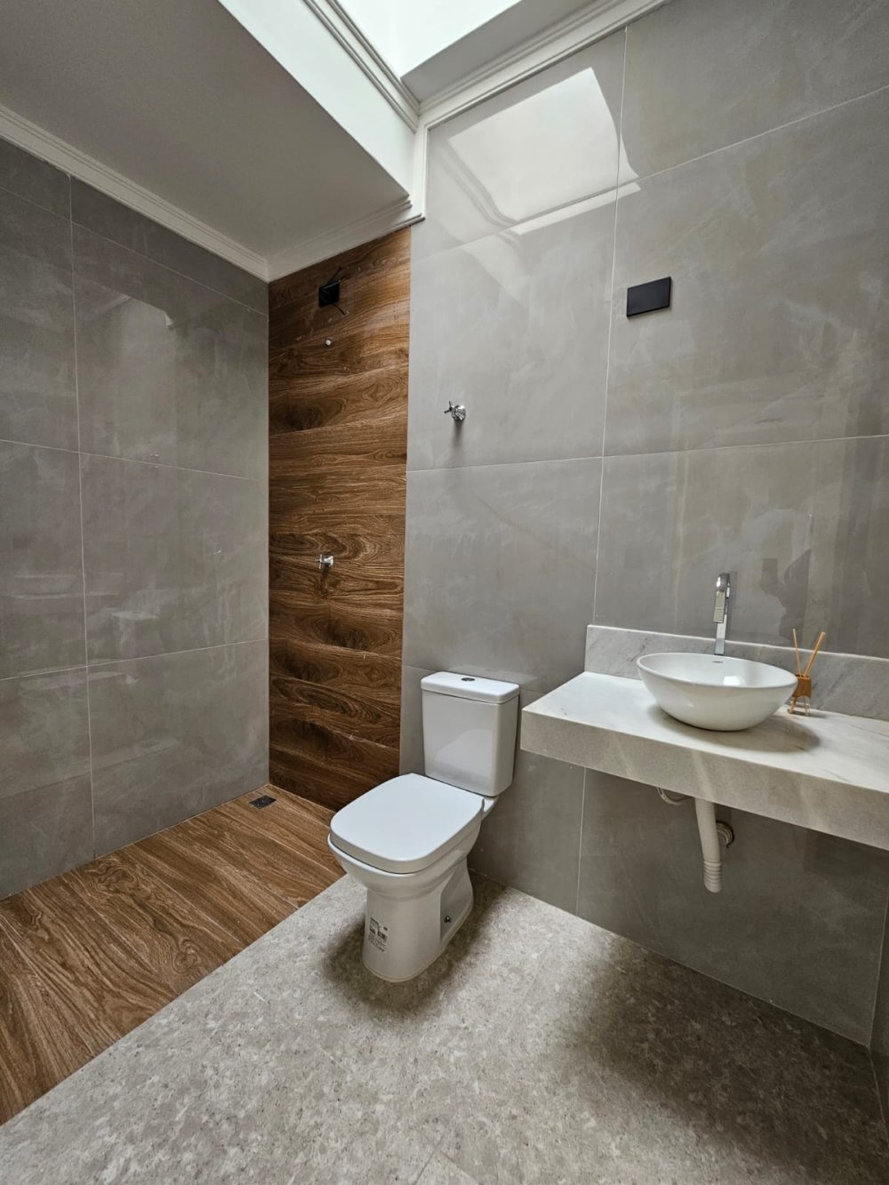 Banheiro social espaçoso e bem ventilado